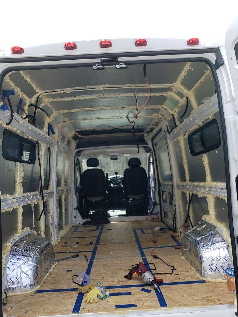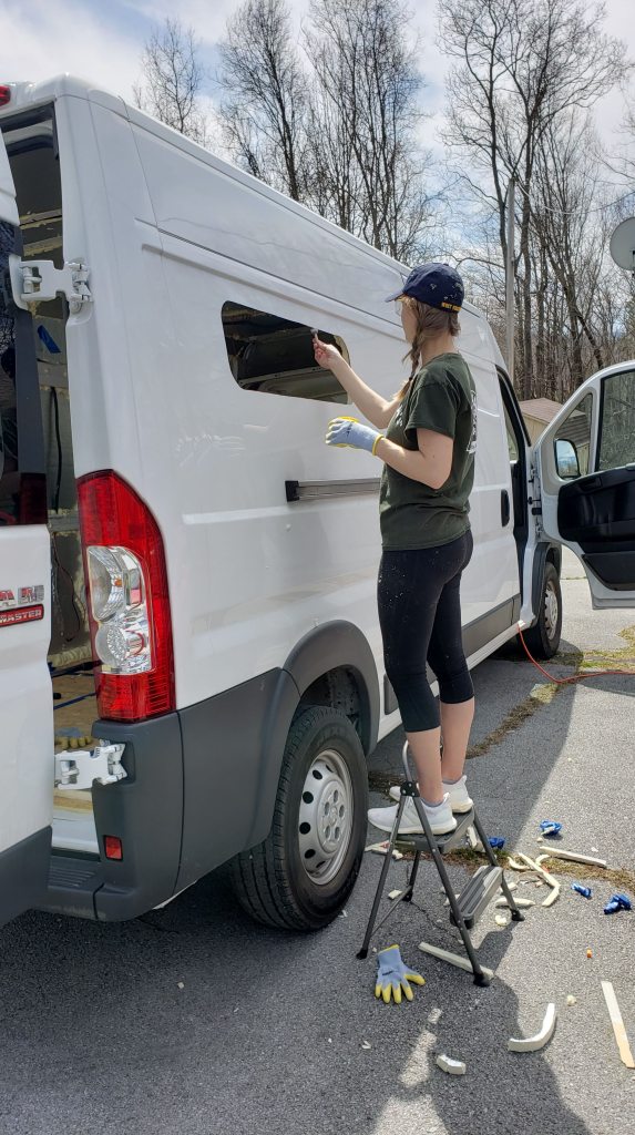 I would advise installing windows before we did in our process. It might be the first thing I would do in another build, at least before the insulation. Several people have a tendency to put it off because it’s intimidating, but that may make things more complicated. Firstly, if you insulate and then install windows, it becomes difficult to know exactly where to cut or what you may be cutting through. In the Promaster, there are vertical support ribs near the back that needed to be cut through that became difficult to see. Then any insulation in that area would just be thrown away.