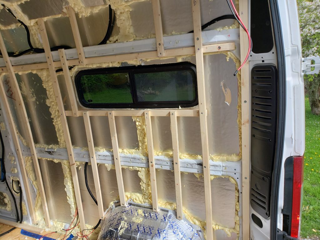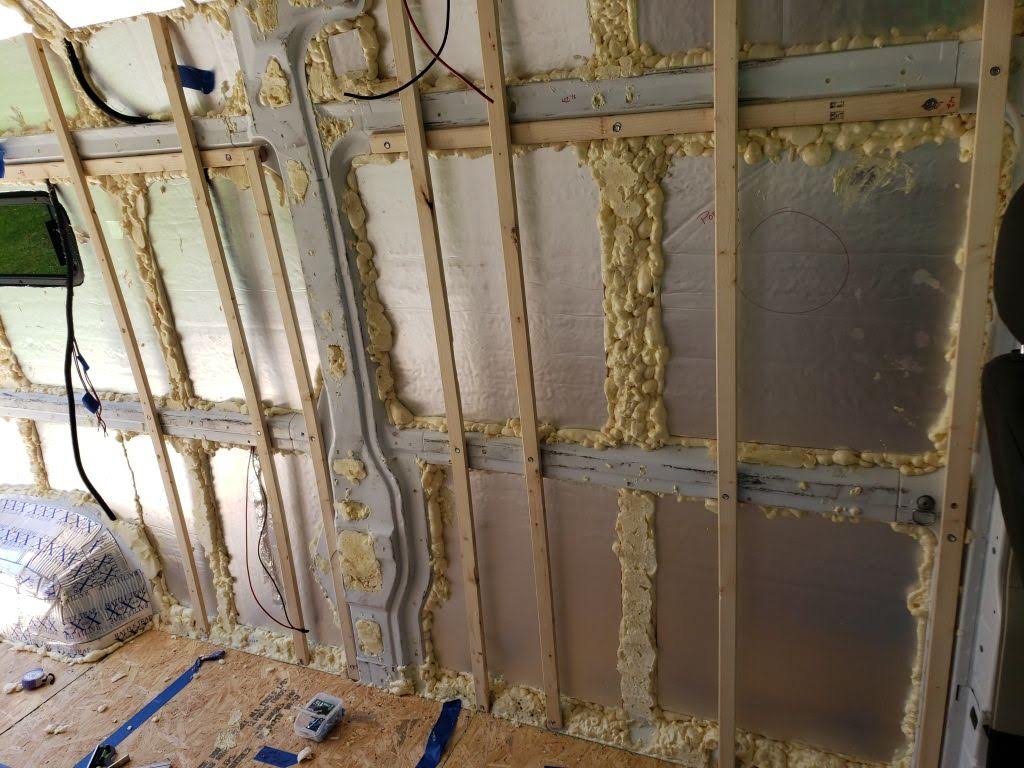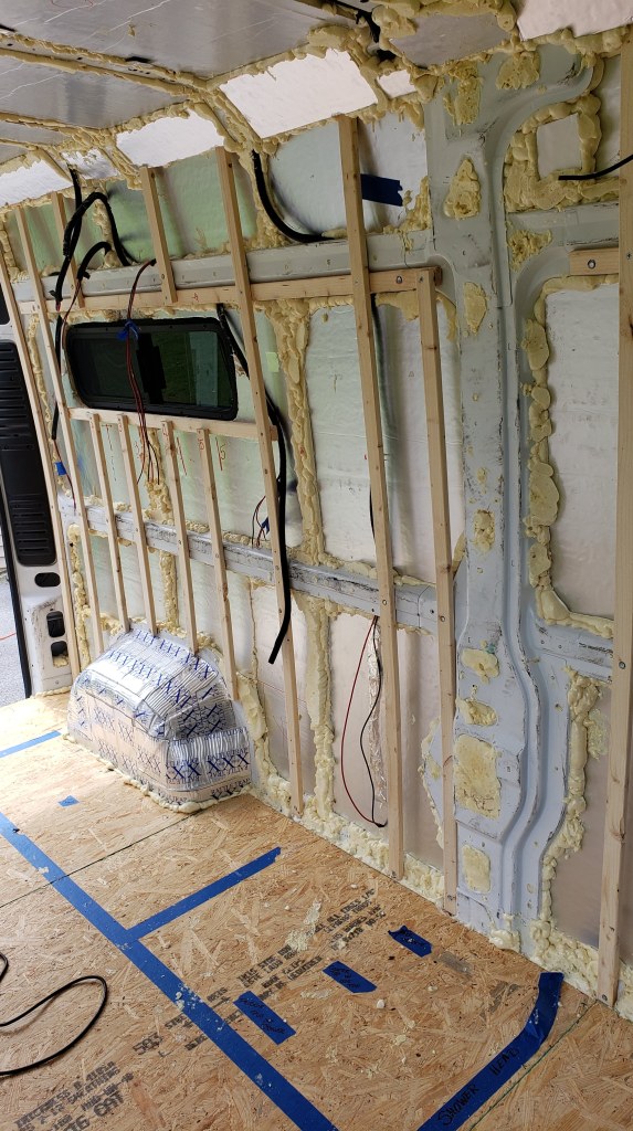 Before starting just about any project in the van (including building the bed area), it’s necessary to create the wall studs within the van. Fastening some wood studs to the body of the van with some heavy duty screws will provide a lot of confidence moving forward. Confidence the walls will stay where they are put. Confidence any cabinet and furniture will remain in place while suffering from the daily ‘earth quakes’ of travel.