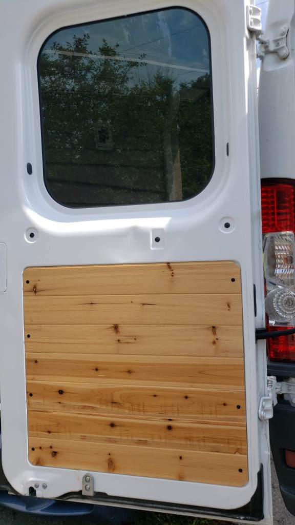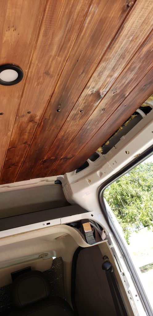Attaching cedar panels to our Ram Promaster 2500 ceiling and walls for that ‘homey’ feel