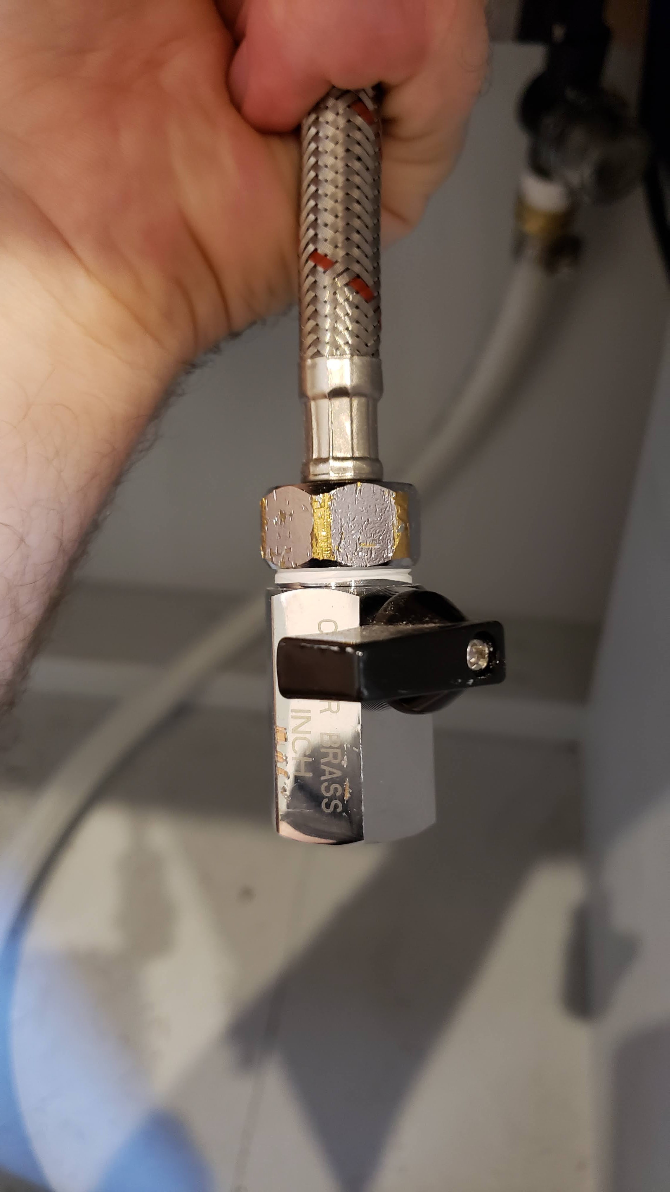 If you’re not using hot water, connect the other braided hose to the hot water side of the faucet, then add the shut off valve to the other end of the hose and tuck it away. Depending on the faucet, this may not be totally necessary.