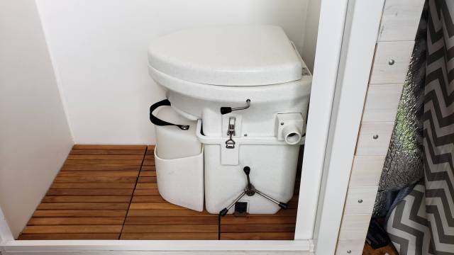 Having the ability to go to the bathroom anywhere, anytime is a huge win for us. With the nature’s head composting toilet, there is no black tank to worry about dumping at stations.